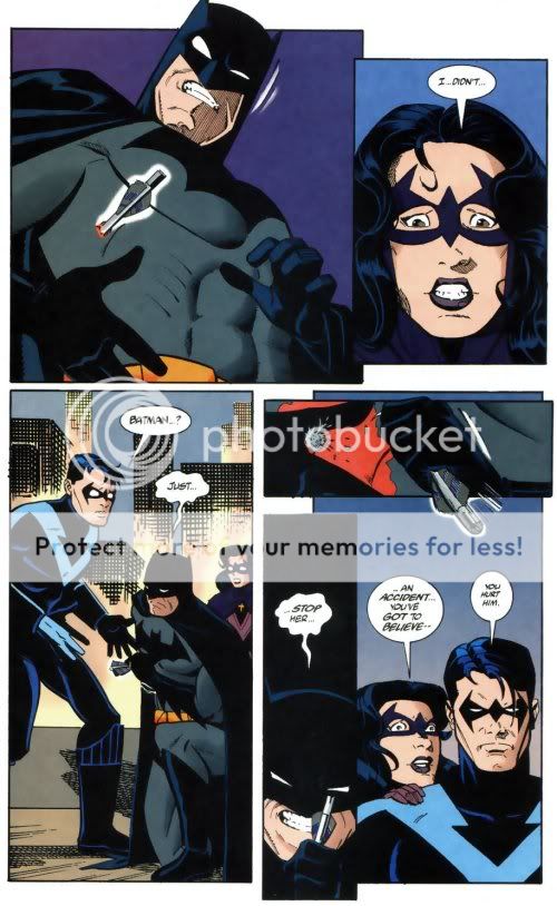 and Dick doesn't pull his punches after that (in the next issue she looks like a victim of domestic abuse...)